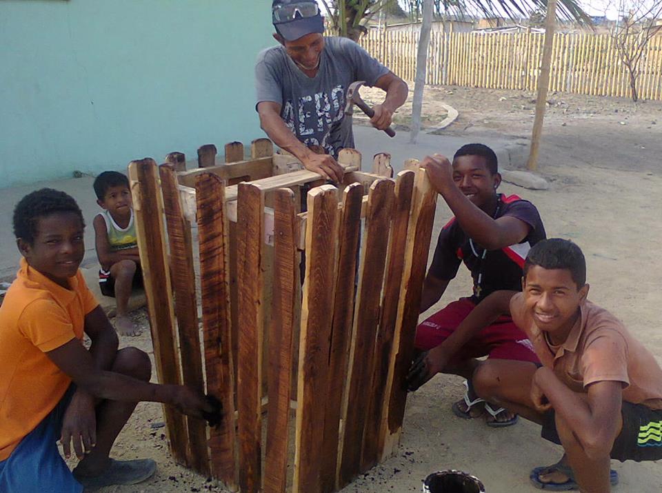 @Rurrana. The youth learning how to work with wood. – making a community trash can.